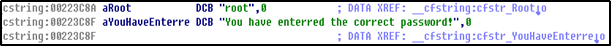 이 부분이 root를 입력하면 correct password 메시지를 보여주는 부분인 것 같다.