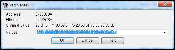 010 editor 프로그램에서 그림 13-3에서 찾은 16진수를 바꾸면 될 것 같다.