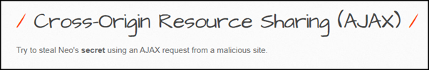 악의적인 사이트의 AJAX를 이용하여 Neo 계정의 secret을 획득하라는 메시지가 보인다.
