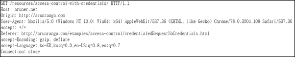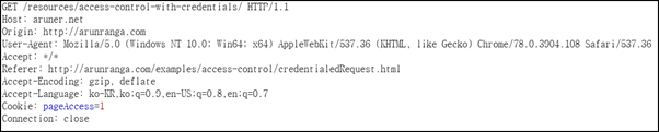 HTTP Cookie와 HTTP Authentication 정보를 인식할 수 있게 해주는 요청이다. 요청 시 xhr.withCredentials=true로 지정해야 하며, 요청 받은 서버가 Access-Control-Allow-Credentials: true로 반응하지 않으면, 응답을 무시하며 웹 페이지를 사용할 수 없다