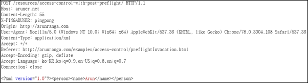 HTTP Request는 arunranga.com로부터 온 요청이다.