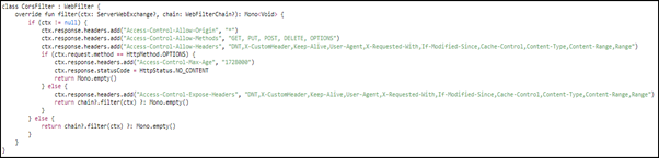 소스코드를 보면 CORS 설정이 되어 있지 않는 것을 알 수 있다.