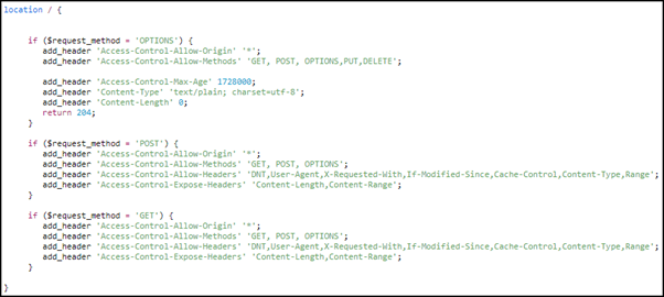 nginx에서 CORS 구성할 때 소스코드 예시