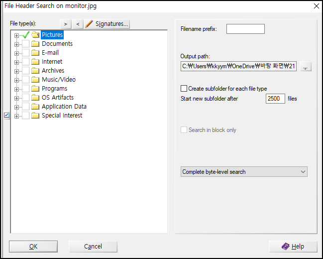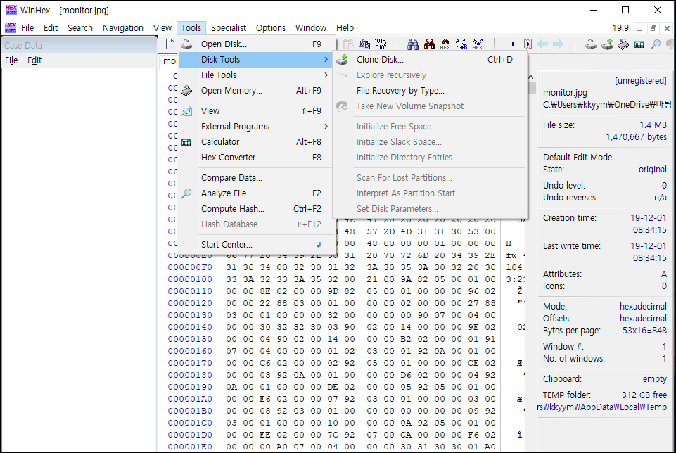 X-Ways hex editor 도구인 WinHex 도구를 이용하면 쉽게 파일을 카빙 할 수 있다.