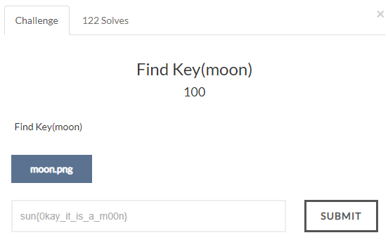 sun{0kay_it_is_a_m00n} 키 값을 찾았다.