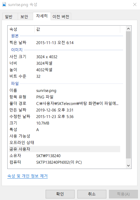 sunrise.zip 파일에 사진 파일의 속성을 보면 크기가 너무 크다는 것을 알 수 있다.