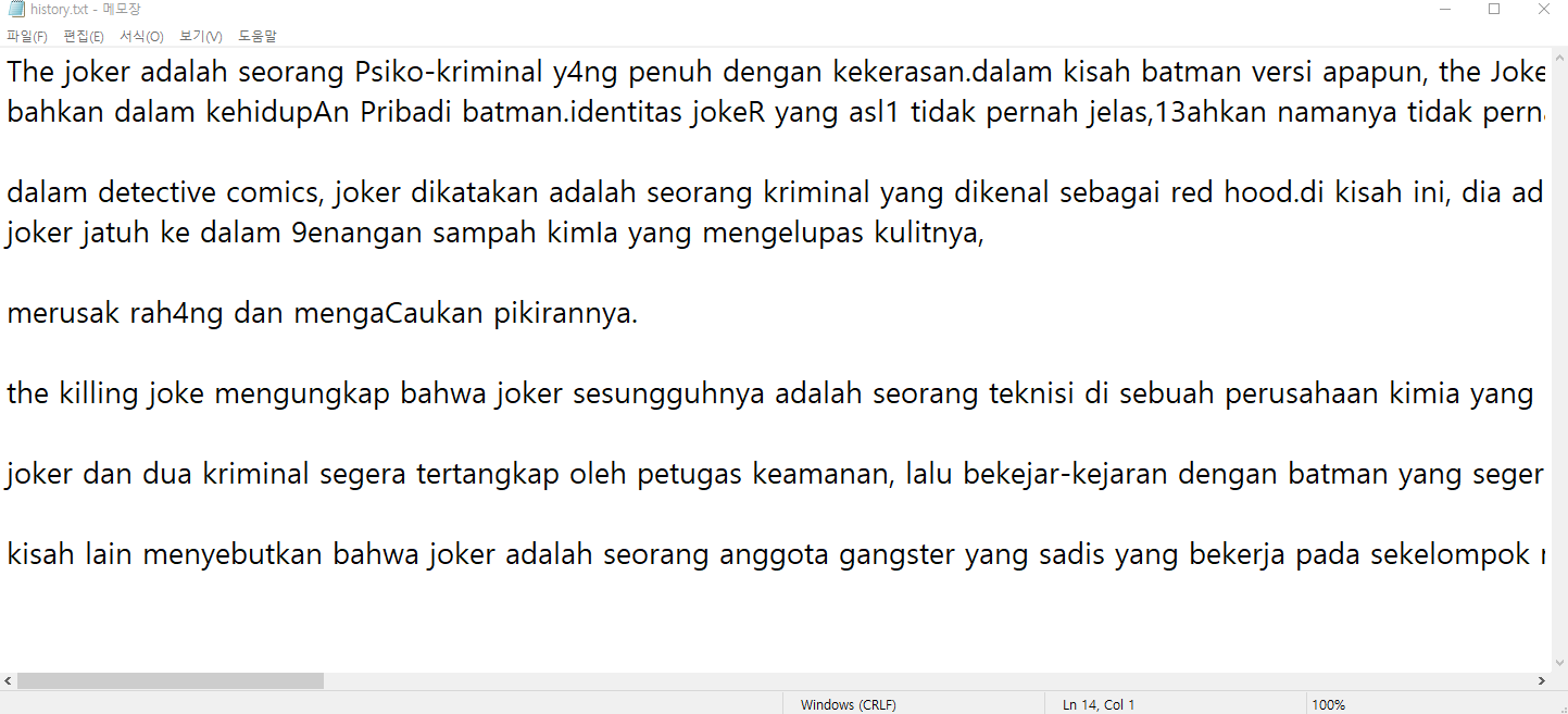 history.txt 파일을 확인해보니 영어, 숫자 섞인 글을 확인할 수 있다.