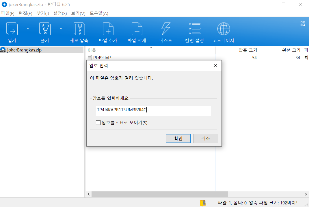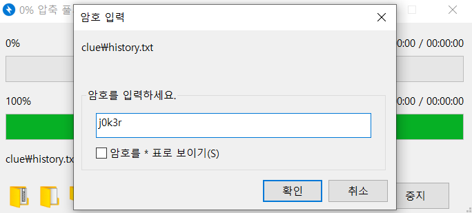 압축파일을 패스워드를 입력해 풀었다.