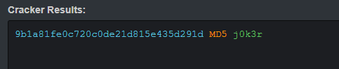 해시함수를 복호화 해 j0k3r이라는 패스워드를 찾았다.