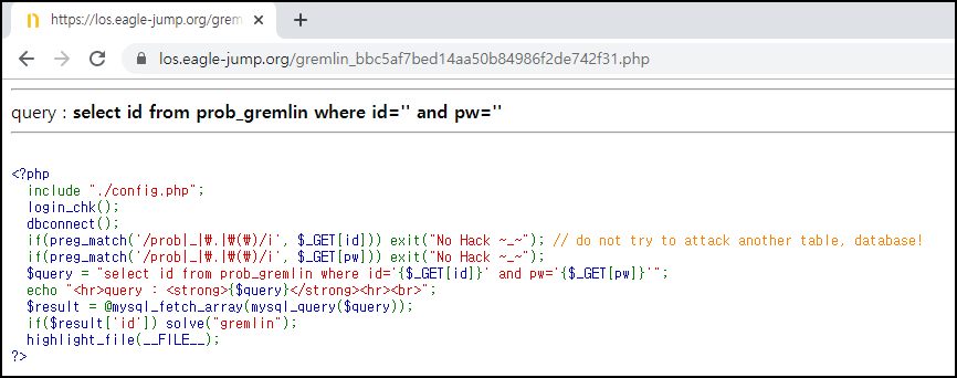 URL 주소에 ?id=adim 입력했을 경우 where id='admin'이 들어가 있는 것을 알 수 있다.