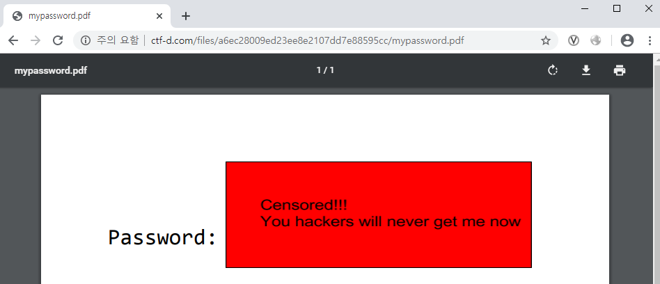 mypassword.pdf 파일을 다운로드하여 열어보니 비밀번호가 있는 것을 알 수 있다.,