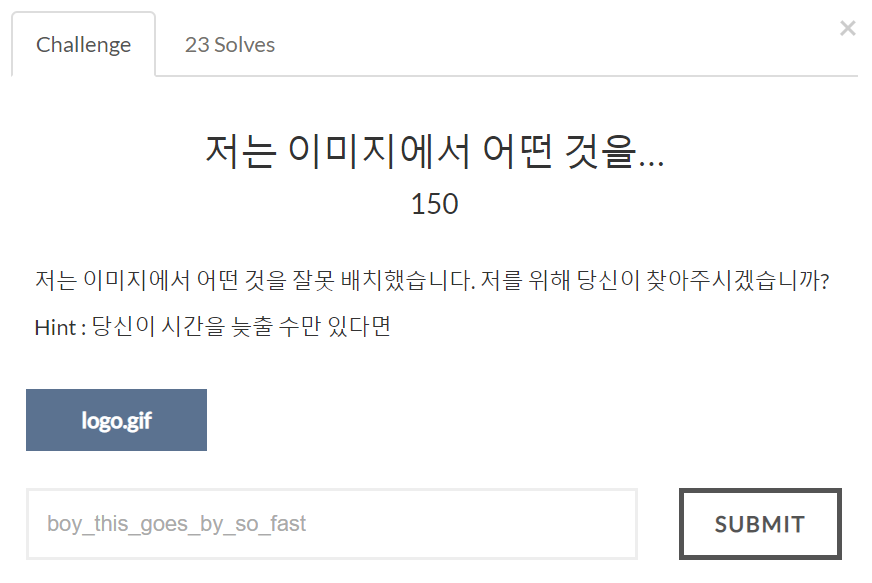 logo.gif 파일을 다운로드하여 보면 다른 메시지가 보이는 것을 알 수 있다.
