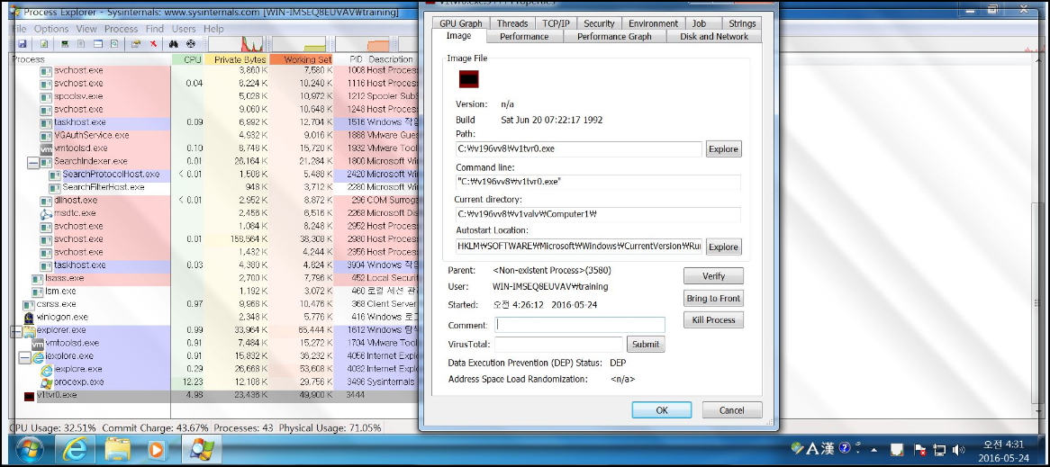 이미지 경로 되로 c:\v196vv8\v1tr0.exe 키로거를 확인할 수 있다.