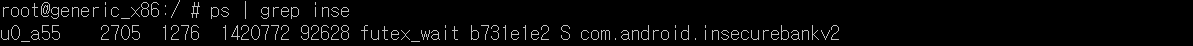 ps | grep inse 명령어로 현재 실행되고 있는 인시큐어뱅크 앱의 PID를 확인했다