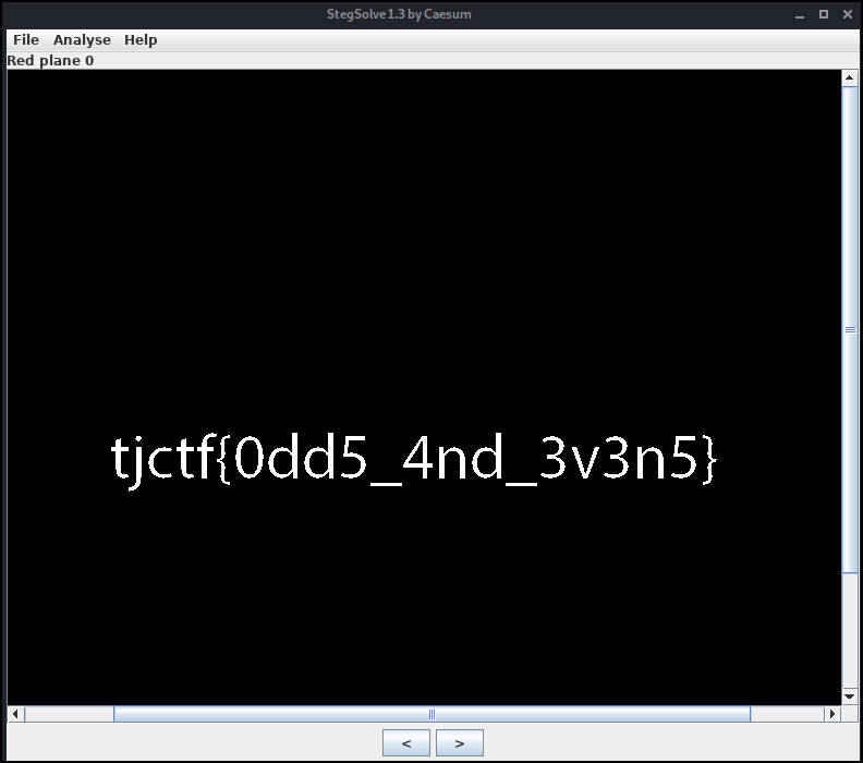 Stegsolve.jar 파일을 시켜 hidden.png 파일을 열어 확인했다.