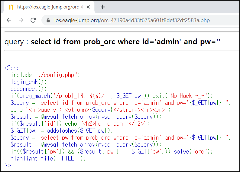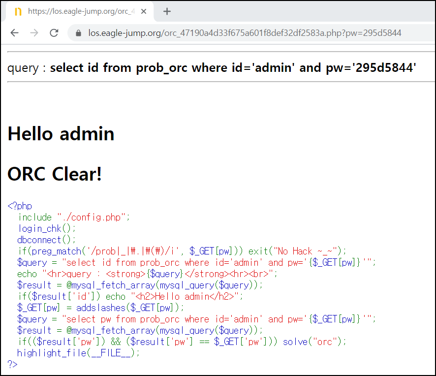 length(pw)=8#을 입력했는데 Hello admin 문구가 보이는 것을 알 수 있다.