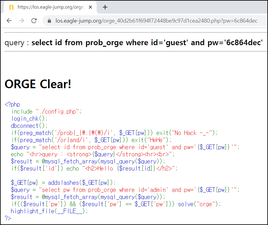 pw=6 c864 dec 패스워드를 구해 Clear 했다.