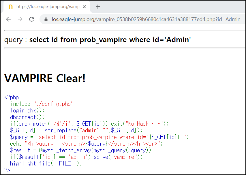 id 변수에 admin이 아닌 Admin을 입력했을 경우 Clear 되는 것을 알 수 있다.