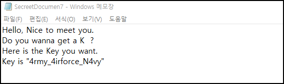 ScreetDoumen7.txt 파일에서 FLAG값을 확인할 수 있었다.