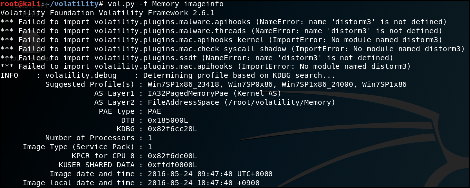 볼라티릴티 설치 후 imageinfo를 확인했다.