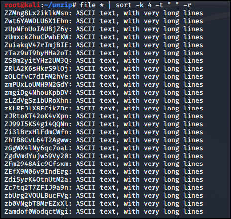 file * | sort -k 4 -t " " -r 명령어로 정렬시켰다.