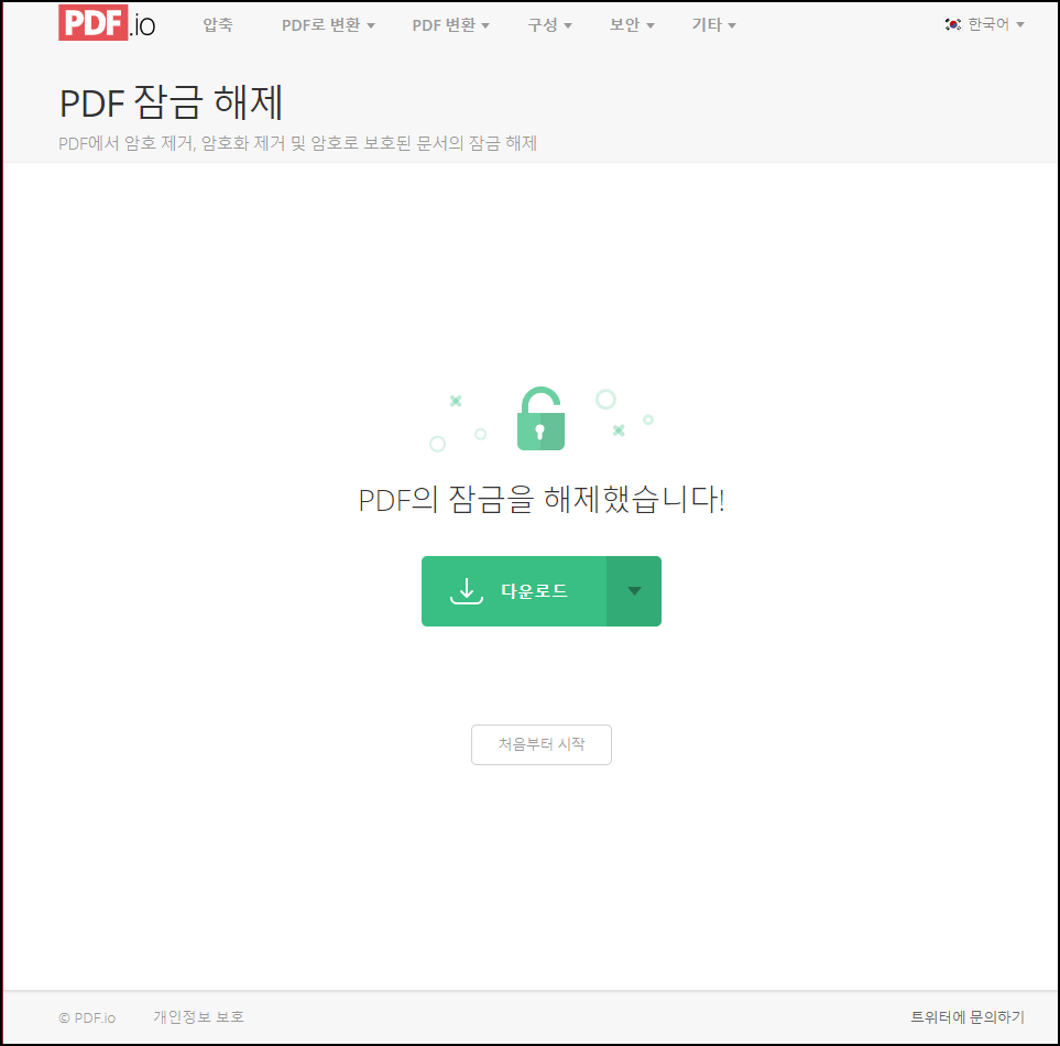 https://pdf.io/ko/unlock/사이트를 이용해 pdf 잠금을 해제했다.