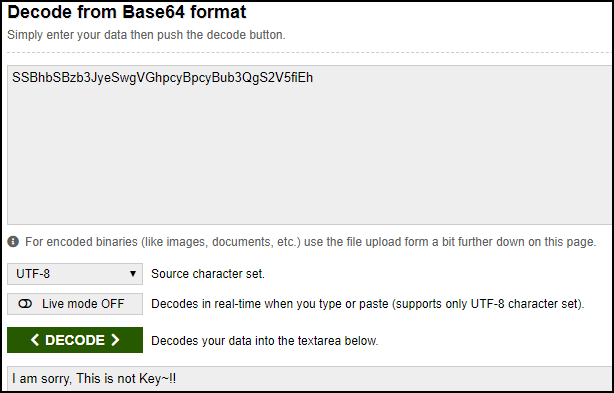 base64를 계속 복호화를 시도했는 데 key가 아니라는 것을 알 수 있다.