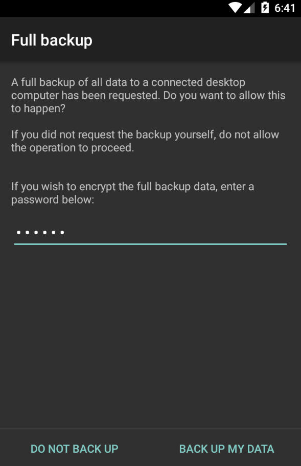 백업은 해당 애플리케이션의 AndroidManifest.xml에 포함된 allowBackup 속성을 따른다. ture로 설정된 경우에 백업이 가능하다.