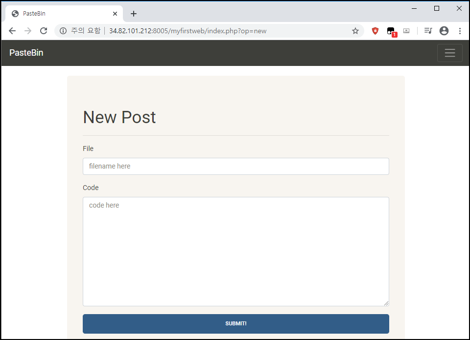 http://34.82.101.212:8005 URL 접속했다.