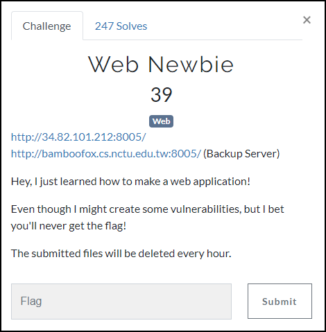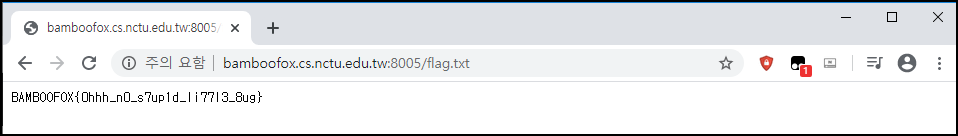 bamboofox.cs.nctu.edu.tw:8005/flag.txt 접속 시 FLAG 값을 확인할 수 있다.