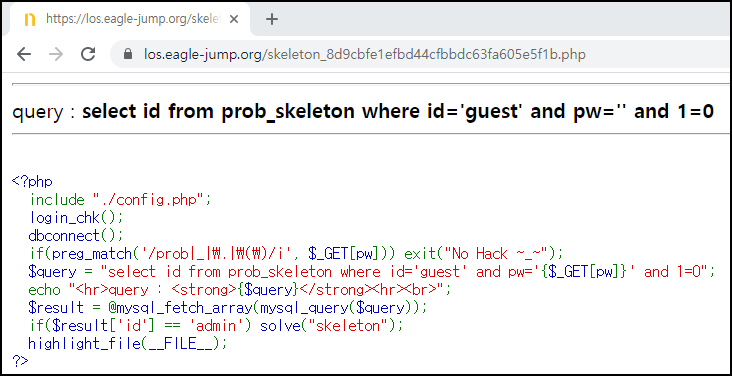 pw=' or id='admin'# 주석처리를 하여 문제가 풀리는 것을 알 수 있다.