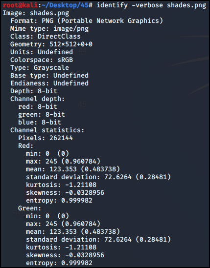 identify 명령어를 통해 shades.png 파일 정보를 확인했다.
