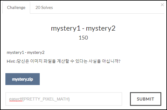 FLAG 값 easyctf{PRETTY_PIXEL_MATH} 확인할 수 있다.