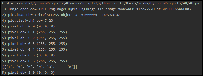 하나의 픽셀로 검은색은 0 흰색은 1로 파이썬 소스코드를 짜보았다.