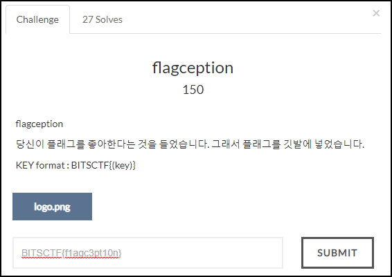 FLAG 값 BITSCTF{f1agc3pt10n}