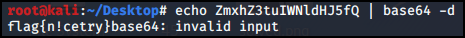 사진 속에 글자를 ZmxhZ3tuIWNldHJ5fQ base64로 복호화를 했는데 FLAG 값을 확인할 수 있다.