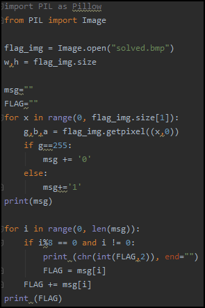 1픽셀 정도를 PIL모듈을 이용해 추출해서 바이너리 변환을 하는 소스코드를 만들었다.