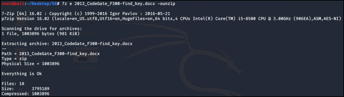 2013_CodeGate_F300-find_key.docx 파일을 압축파일로 만들어 압축을 해제했다.