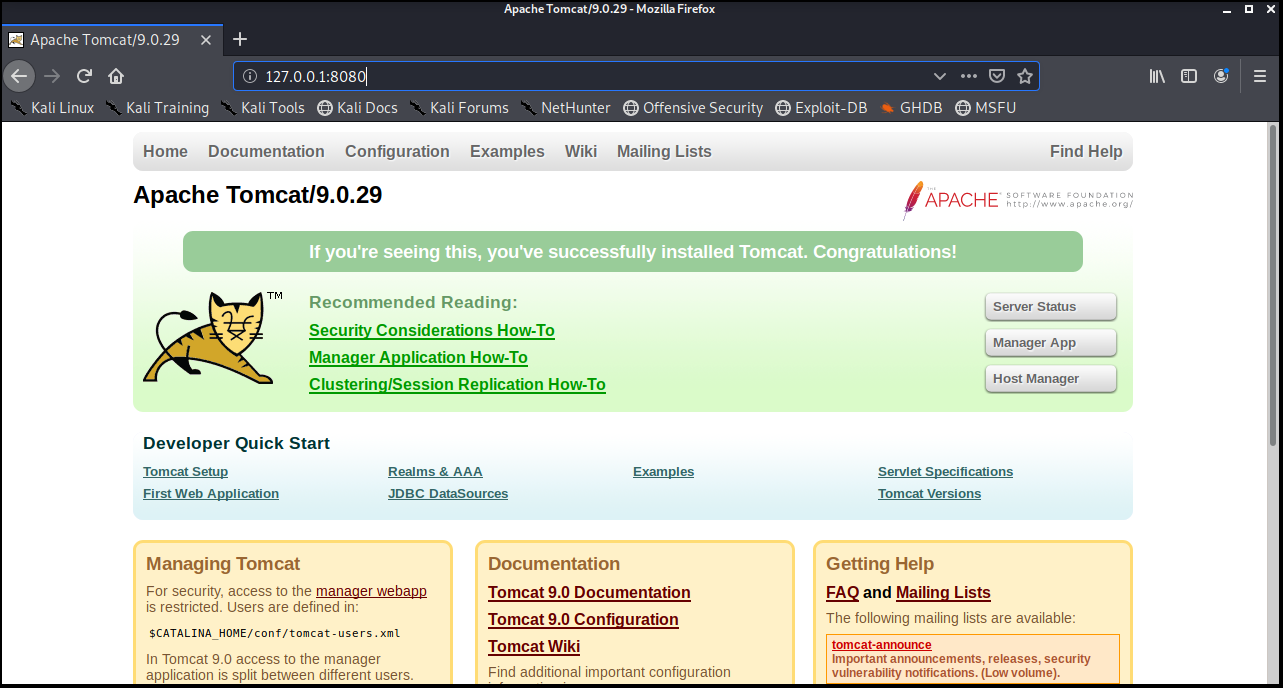docker를 이용해 취약한 Tomcat 버전 9.0.29를 설치했다.