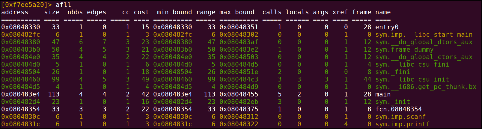 afll 명령어로 crackem0x01 사용한 함수들을 확인할 수 있다.