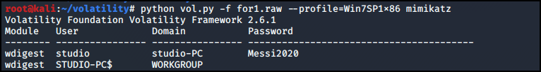 mimikatz 플러그인을 이용해 Password을 알아냈다.