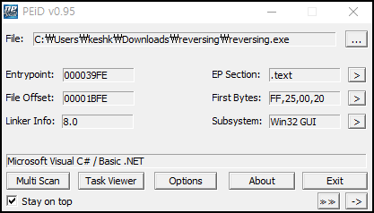 PEiD 프로그램을 이용해 Microsoft Visual C# / Basic .NET라는 정보를 확인했다.