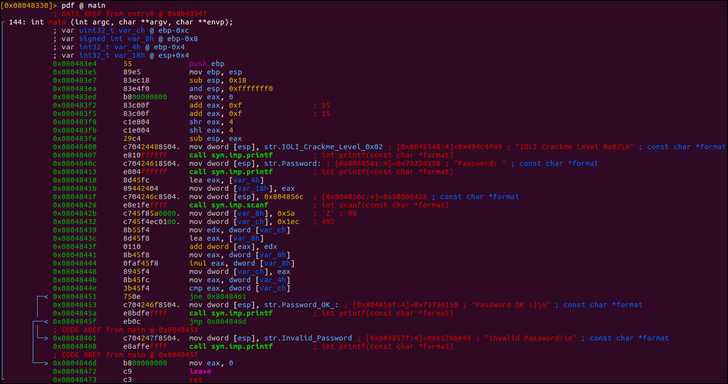 0x0804844e 주소 값에 var_ch 변수가 있어 338724 입력 시 Password OK :) 라는 메시지를 확인할 수 있다.