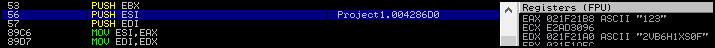 PUSH ESI를 확인하면 입력한 123과 Key 값을 비교하는 것을 알 수 있다.