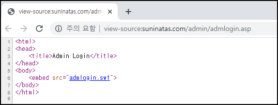 소스코드를 보면 admlogin.swf 파일을 확인할 수 있다.