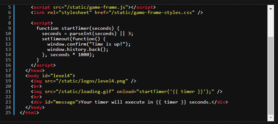 level4/frame?timer=('{{ timer }}'); 전달되는 것을 알 수 있다.