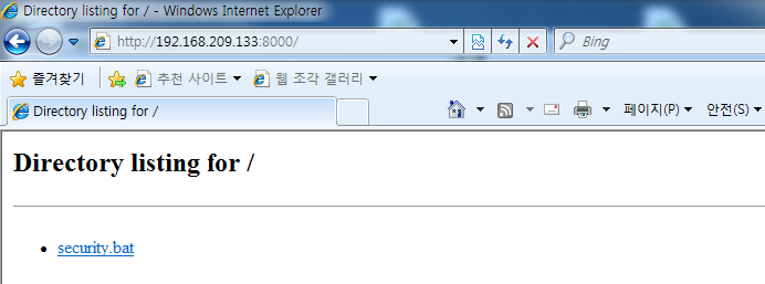메타스플로잇에서 8080포트를 열고 윈도우 서버에서 8080포트로 접속