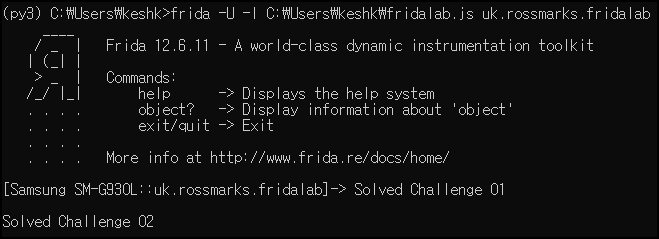 FridaLab에서 [CHECK]버튼을 클릭한다면 초록색 글씨로 바뀐 것을 알 수 있다.