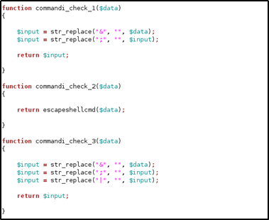 escapesheelcmd 함수는 시스템 셸로 실행할 수 있는 특수 문자에 백슬래시를 붙여 명령을 실행할 수 없도록 방어한다.