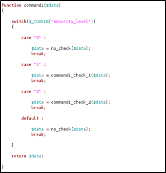 OS command Injection 공격 난이도 별로 함수를 알 수 있다.
